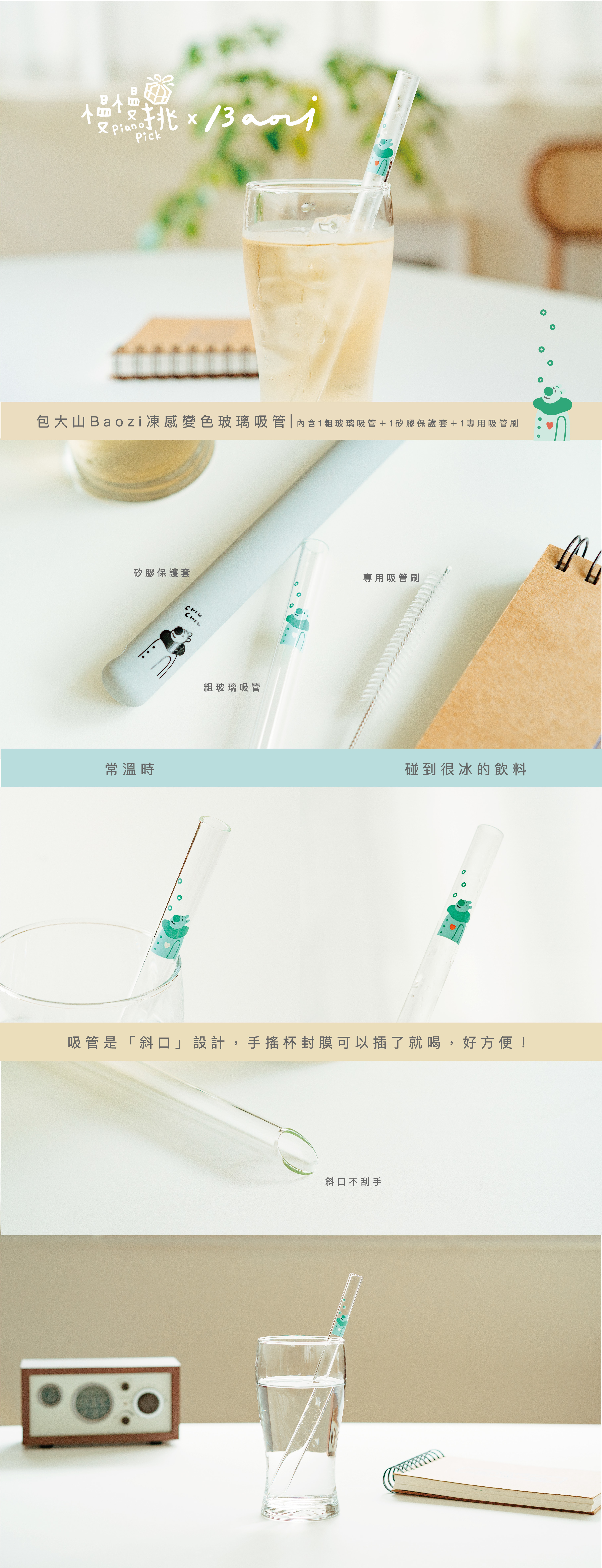配合減塑潮流,玻璃吸管採用高硼矽玻璃,耐熱耐酸,吸管遇冷圖案會變色,讓減塑生活更有質感!