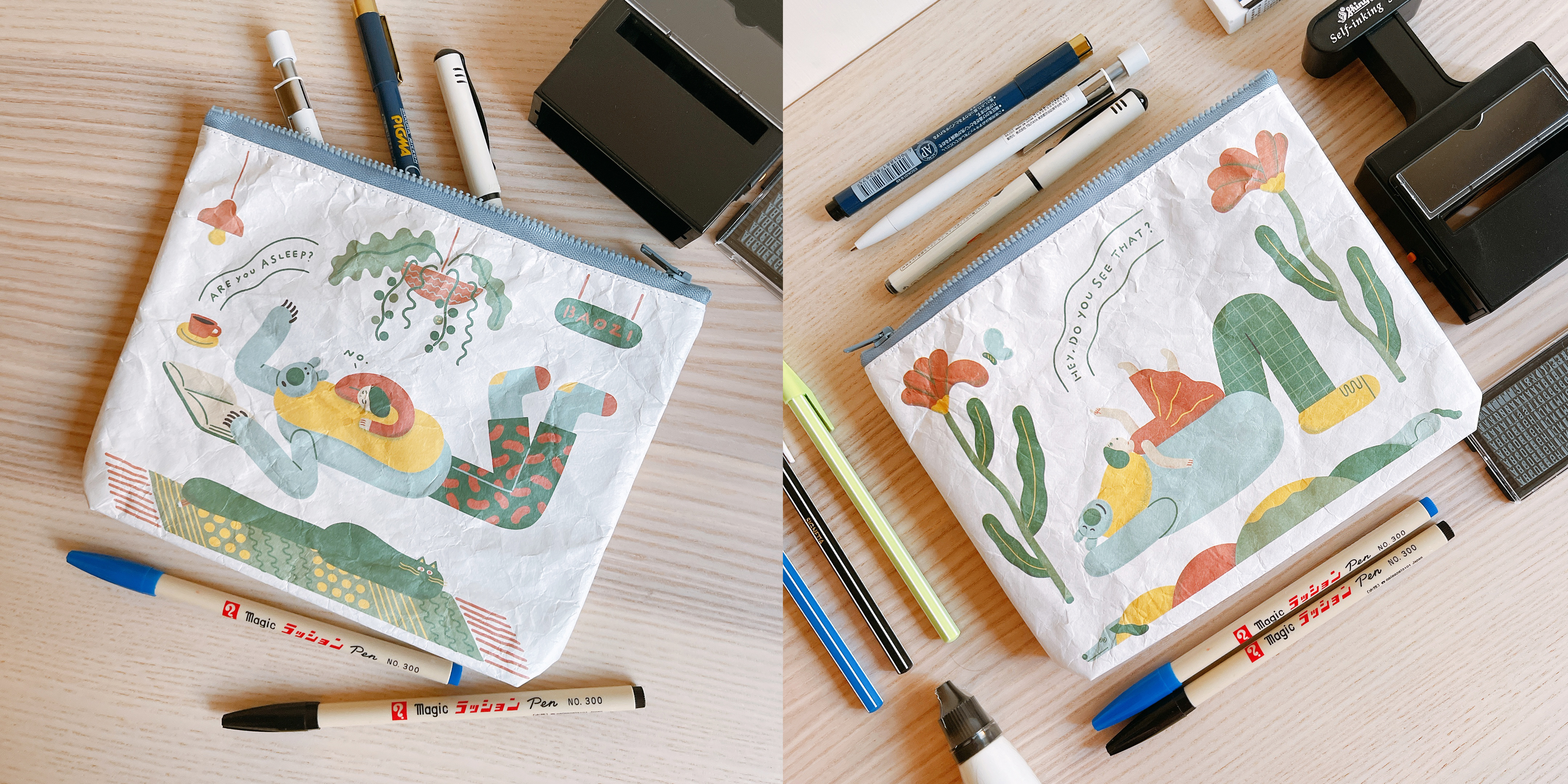 邀請文具授權知名插畫家「包大山」繪製設計「熊超人泰維克收納袋」,類似水洗牛皮的觸感,摸起來是紙的質感,重量超輕,防水防撕,陪伴你的使用過程中產生的使用痕跡皺摺更添加觸感