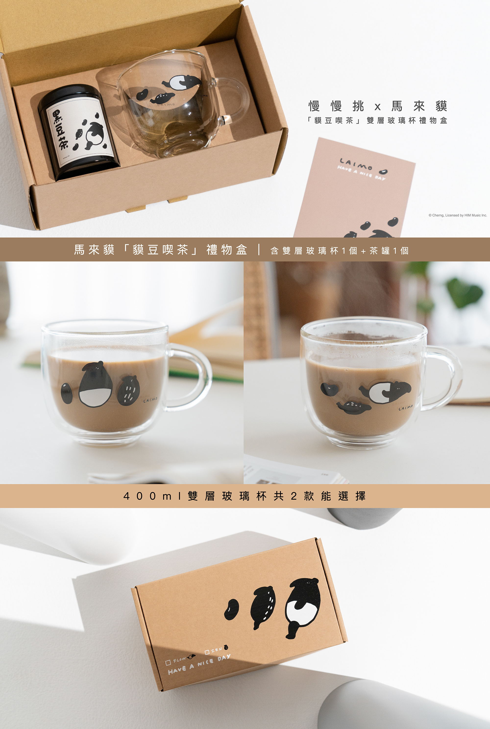 注意事項:雙層玻璃杯共有2款可供選擇 1.跟著貘的Flow、2.貘豆坐好Zen