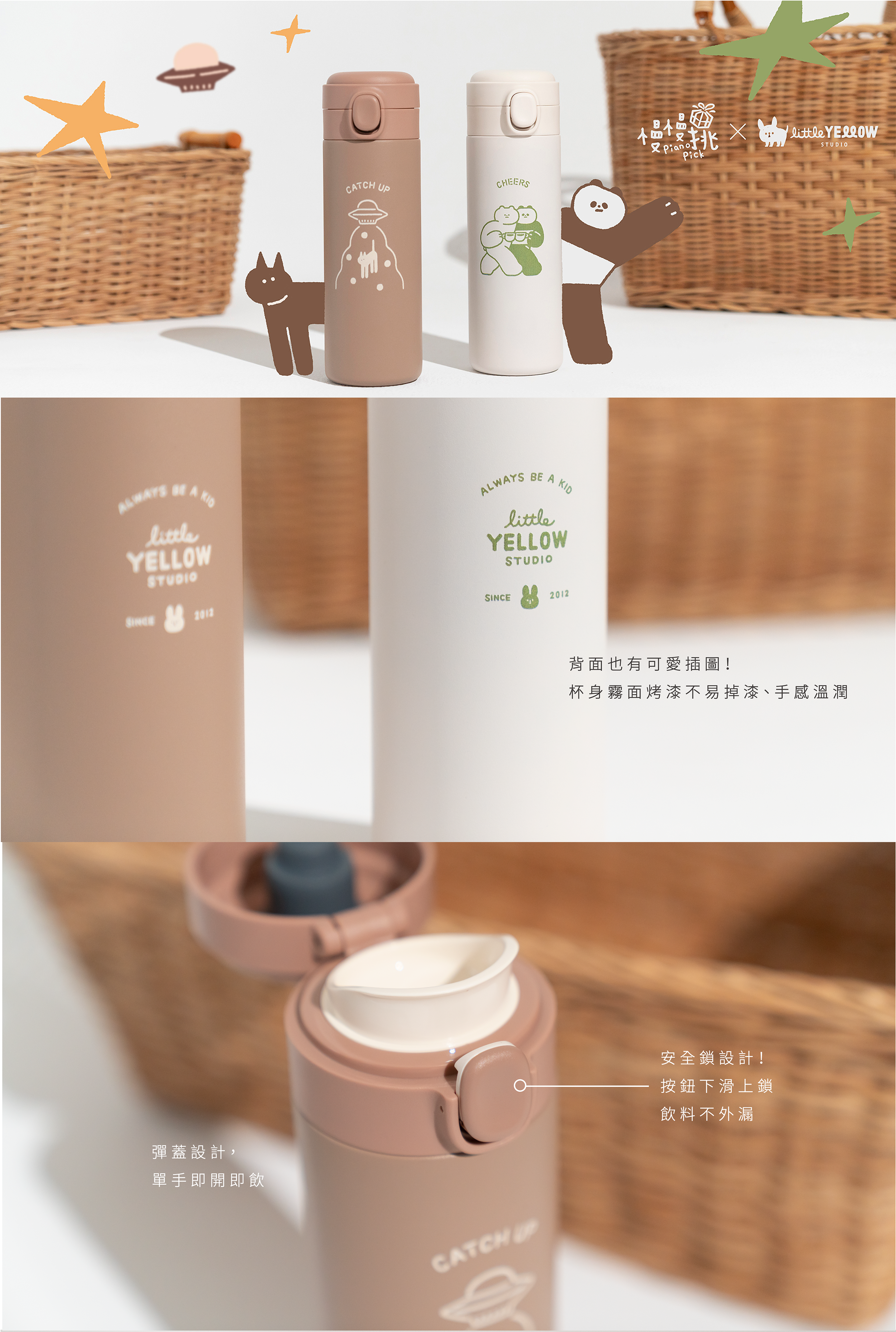 ✔按鈕往下推就能上鎖,飲料不怕外漏